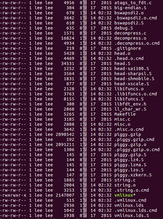 따라서 최종적으로 head.o 파일과 misc.o 파일을 piggy.o 파일 앞부분에 합쳐 놓은것이 zImage가 되는 것이다.
