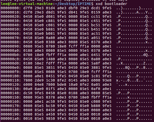 xxd로 bootloader 파일을 확인해본 결과 원래 펌웨어 파일인 g104_kr_7_60.bin의 앞부분과 동일한 것을 볼 수 있다.