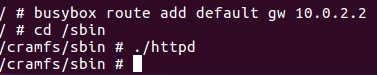 # busybox route add default gw 10.0.2.2