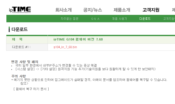iptime의 g104 7.60 버젼의 펌웨어를 사용하였다.